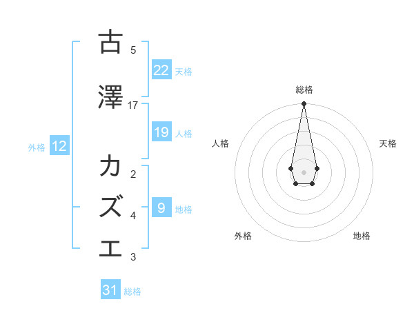 古澤 カズエさんの総格は31画の5点