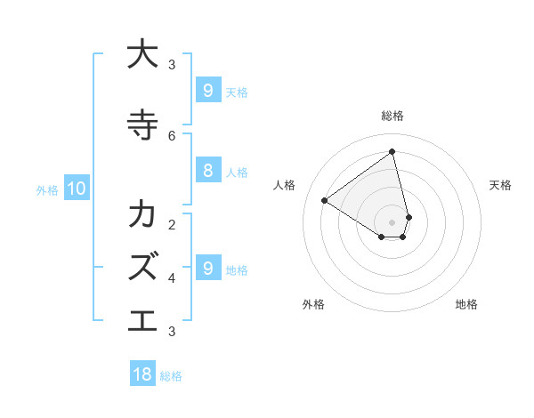 大寺 カズエさんの総格は18画の4点