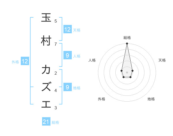 玉村 カズエさんの天格は12画の1点!
