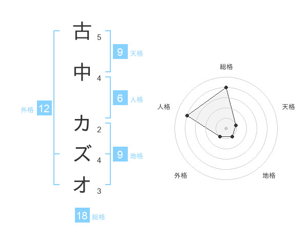 古中 カズオさんの総格は18画の4点!