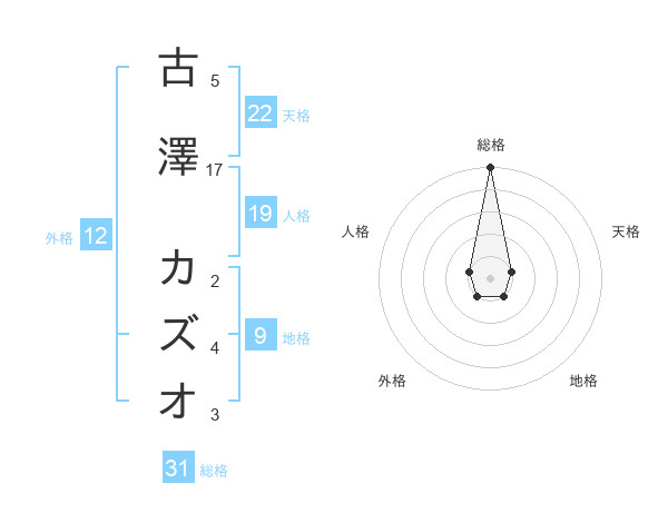古澤 カズオさんを姓名の画数から五運を鑑定