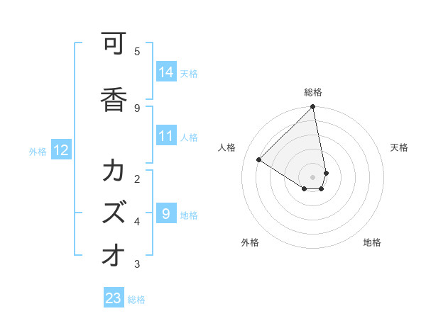 可香 カズオさんの総格は23画の5点!