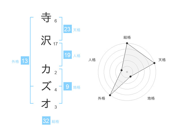 寺沢 カズオさんの総格は32画の5点!