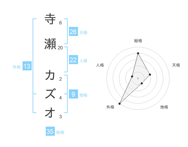 寺瀬 カズオさんを姓名の画数から五運を鑑定