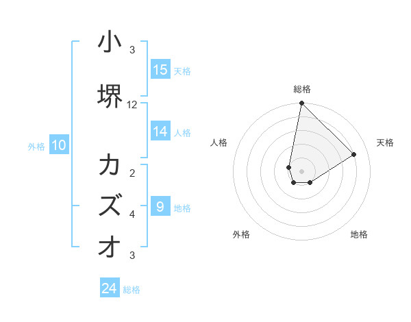 小堺 カズオさんを姓名の画数から五運を鑑定
