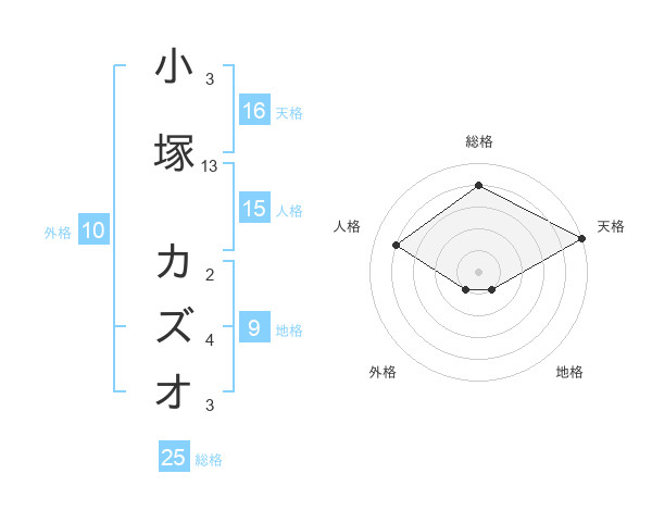 小塚 カズオさんを姓名の画数から五運を鑑定