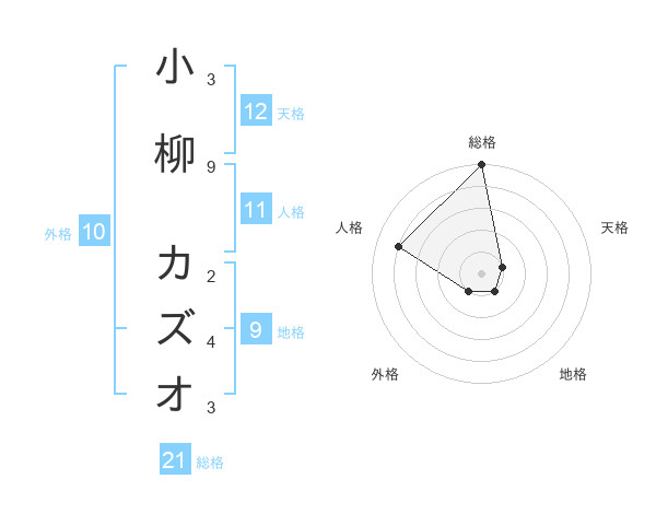 小柳 カズオさんを姓名の画数から五運を鑑定