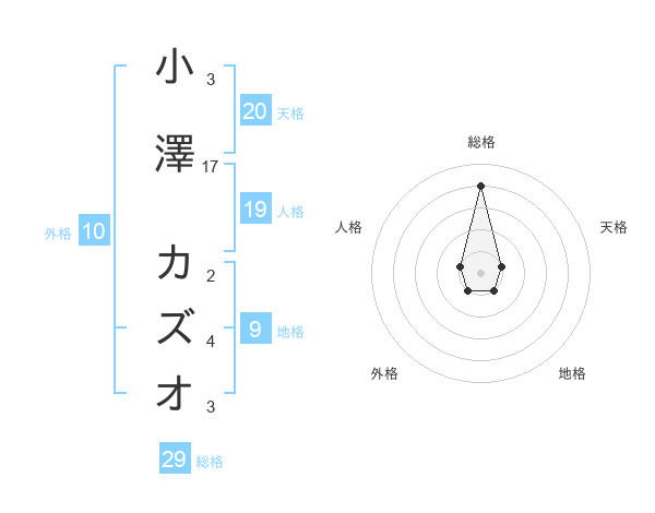 小澤 カズオさんの総格は29画の4点!