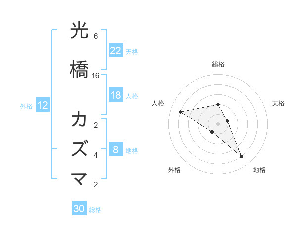 光橋 カズマさんの地格は8画の4点!
