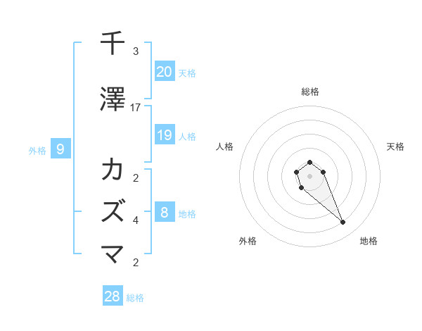 千澤 カズマさんを姓名の画数から五運を鑑定