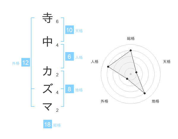 寺中 カズマさんの総格は18画の4点!