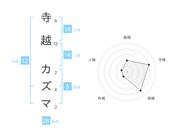寺越 カズマさんを姓名の画数から五運を鑑定