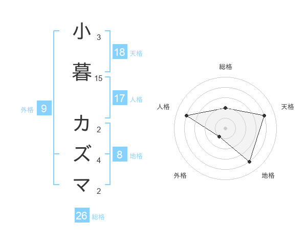 小暮 カズマさんを姓名の画数から五運を鑑定
