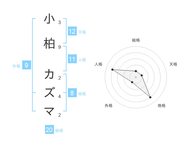 小柏 カズマさんの天格は12画の1点!
