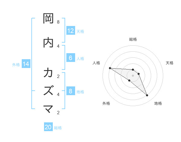 岡内 カズマさんを姓名の画数から五運を鑑定