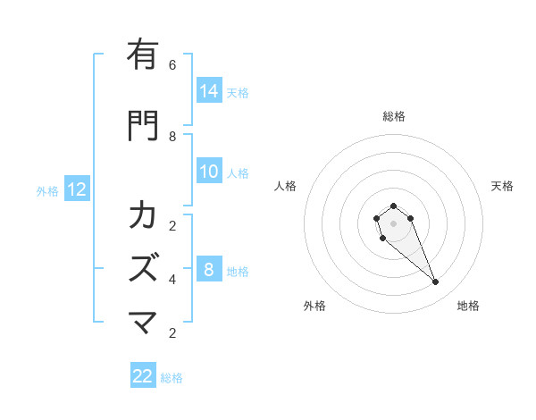 有門 カズマさんの総格は22画の1点!