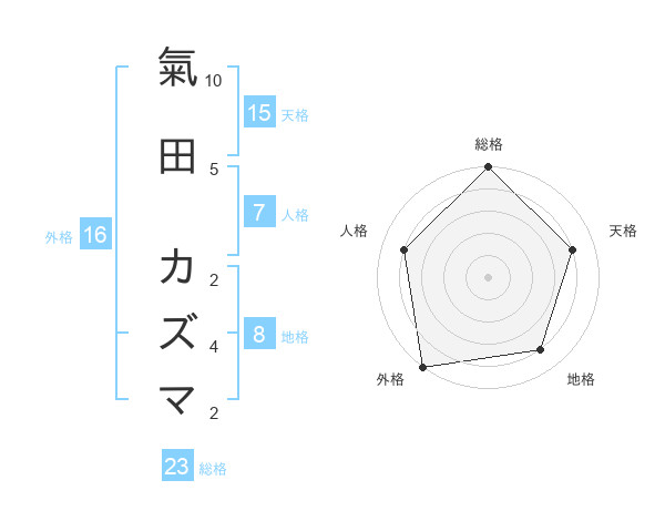 氣田 カズマさんの総格は23画の5点!