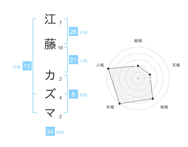 江藤 カズマさんを姓名の画数から五運を鑑定