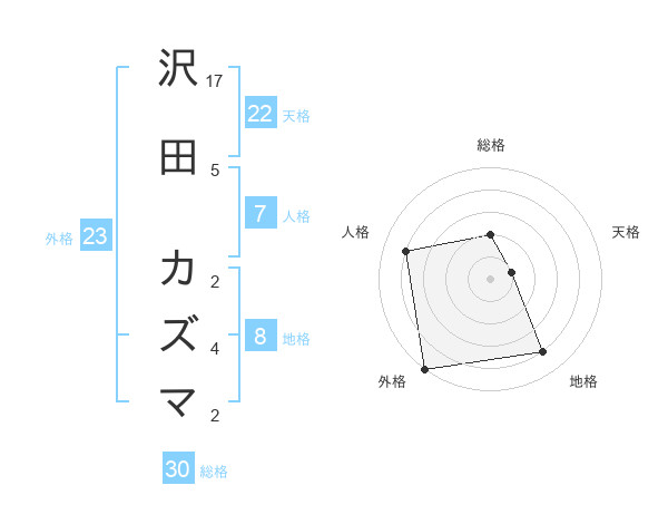 沢田 カズマさんを姓名の画数から五運を鑑定