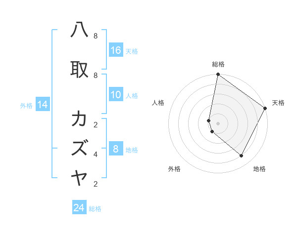 八取 カズヤさんの総格は24画の5点!