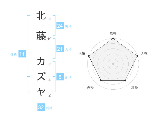 北藤 カズヤさんの総格は32画の5点!