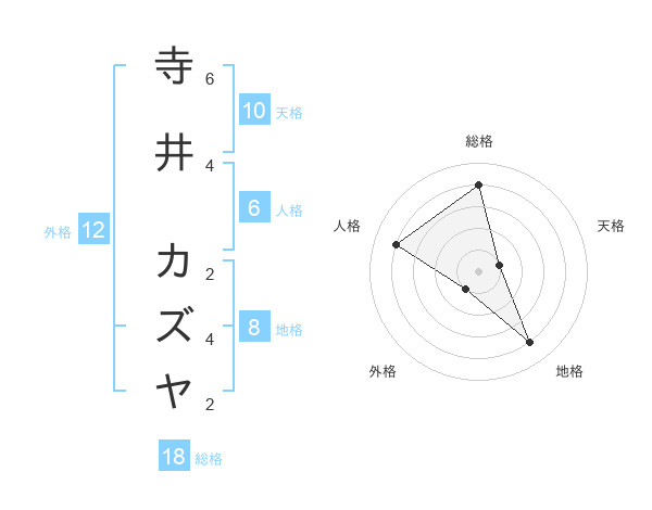 寺井 カズヤさんを姓名の画数から五運を鑑定