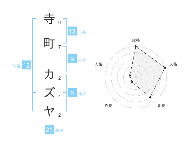 寺町 カズヤさんを姓名の画数から五運を鑑定