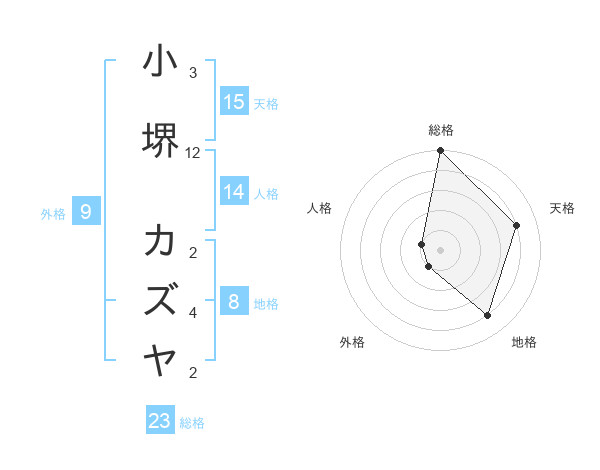 小堺 カズヤさんを姓名の画数から五運を鑑定