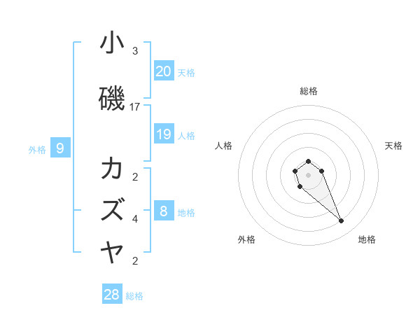 小磯 カズヤさんの総格は28画の1点!