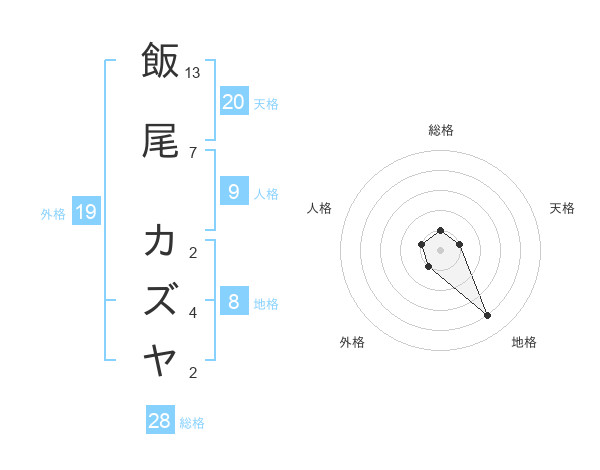 飯尾 カズヤさんを姓名の画数から五運を鑑定