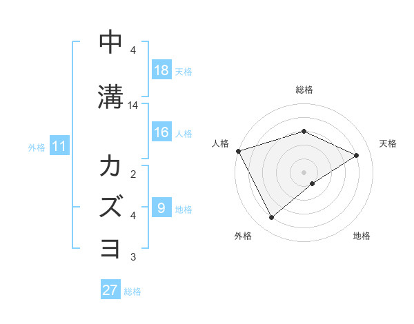 中溝 カズヨさんを姓名の画数から五運を鑑定