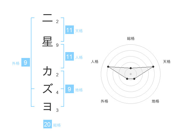 二星 カズヨさんを姓名の画数から五運を鑑定