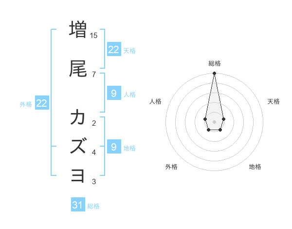 増尾 カズヨさんの天格は22画の1点!