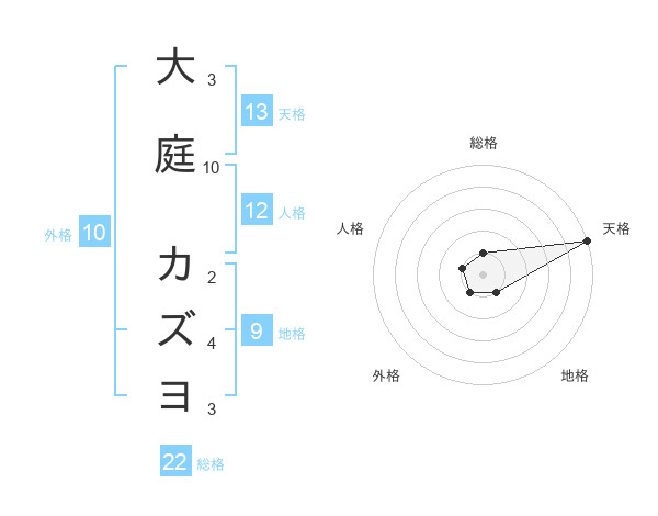 大庭 カズヨさんを姓名の画数から五運を鑑定