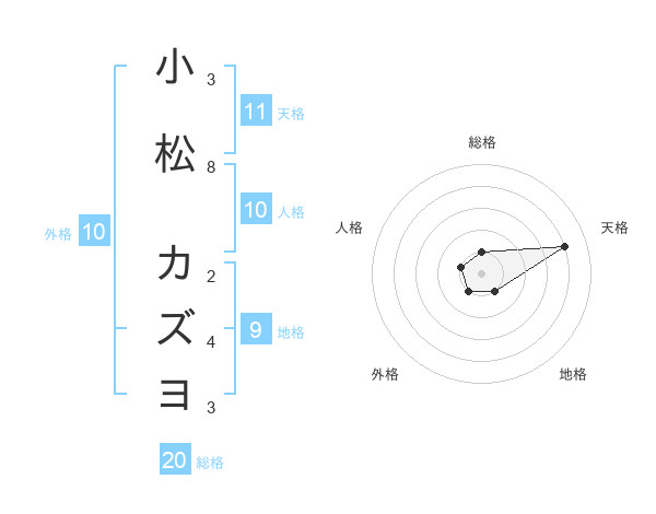 小松 カズヨさんの総格は20画の1点!