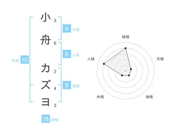 小舟 カズヨさんを姓名の画数から五運を鑑定