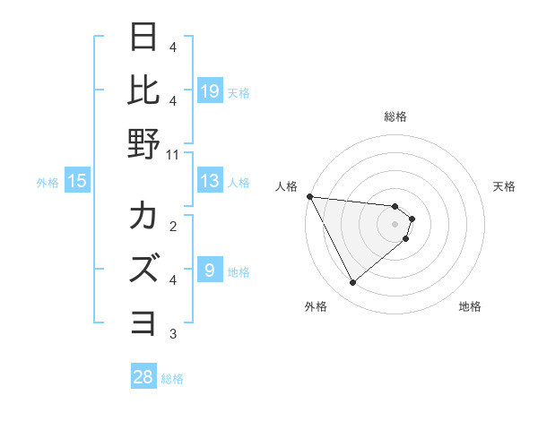 日比野 カズヨさんを姓名の画数から五運を鑑定