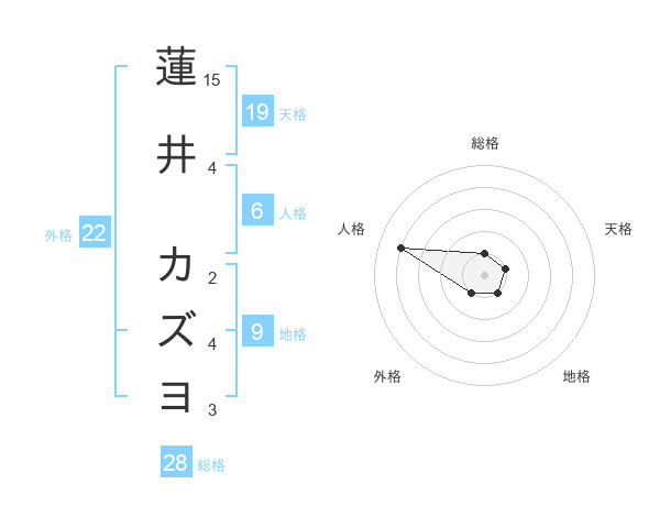 蓮井 カズヨさんを姓名の画数から五運を鑑定