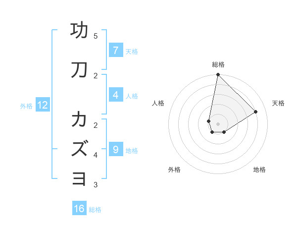 功刀 カズヨさんを姓名の画数から五運を鑑定