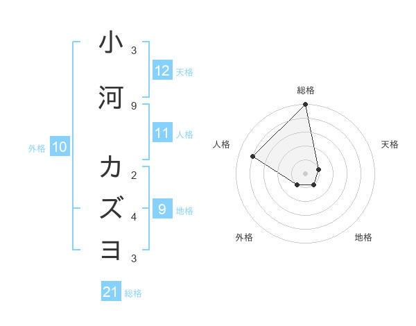 小河 カズヨさんの総格は21画の5点!