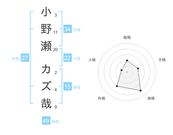 小野瀬 カズ哉さんを姓名の画数から五運を鑑定