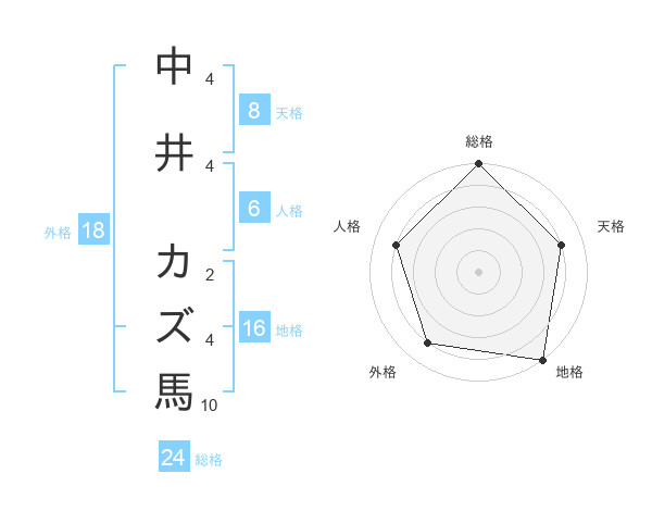 中井 カズ馬さんを姓名の画数から五運を鑑定