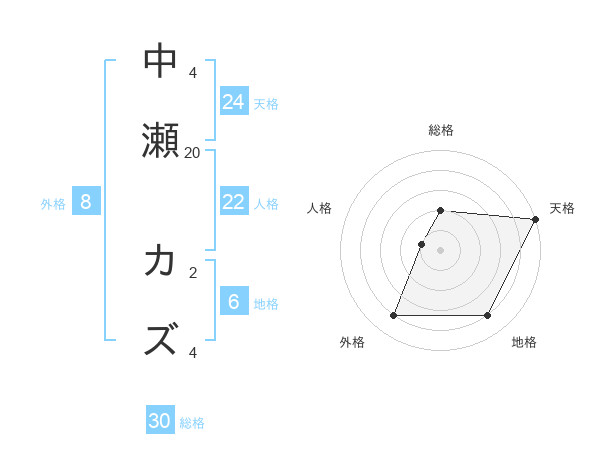 中瀬 カズさんを姓名の画数から五運を鑑定