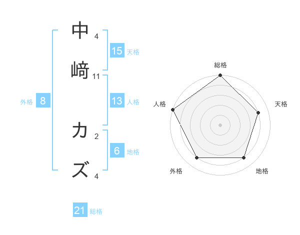 中﨑 カズさんの総格は21画の5点!