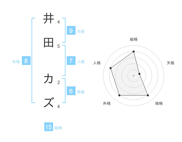 井田 カズさんの総格は15画の4点!