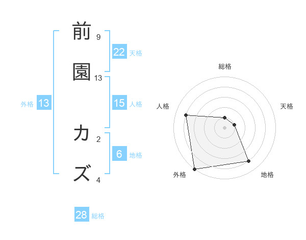 前園 カズさんの外格は13画の5点!