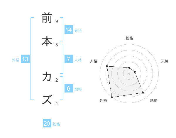 前本 カズさんの総格は20画の1点!