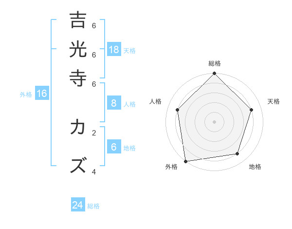 吉光寺 カズさんの総格は24画の5点!