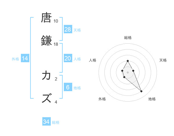 唐鎌 カズさんの総格は34画の2点!