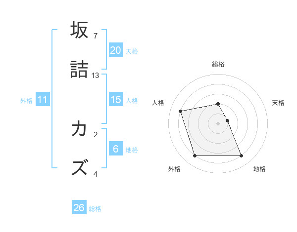 坂詰 カズさんを姓名の画数から五運を鑑定
